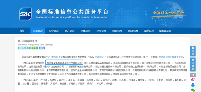喜訊!鄭州鼎盛參與起草的國家標準《奧氏體錳鋼鑄件》于5月23日正式發(fā)布實施