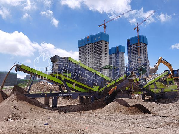 福建廈門輪胎式建筑垃圾處理設(shè)備運(yùn)行現(xiàn)場