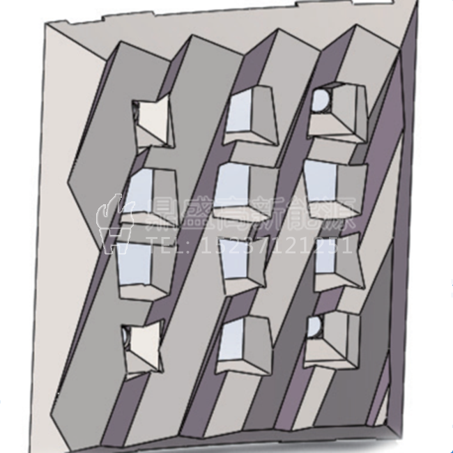 齒形帶斜槽及方孔襯板:可提升破碎、整形效率;小顆粒及時排出打擊區(qū),避免過粉碎從而實現(xiàn)低制粉。