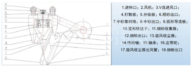 第三步:采用人工砂石風(fēng)選復(fù)合式脫粉機,集篩分風(fēng)選于一體,將物料分為粗細(xì)不同的砂和粉,工藝簡約,節(jié)能環(huán)保。