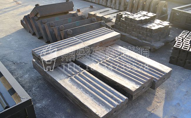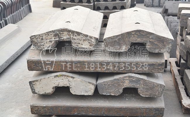 目前國(guó)內(nèi)外顎板、大錘頭、大板錘、軋臼壁、破碎壁等均以高錳鋼或超高錳鋼為主,其組織為奧氏體,有良好的加工硬化性能。在工件經(jīng)受強(qiáng)烈沖擊的工況條件下,其表面迅速硬化,硬度可以從170~225HB提高到400~600HB,而心部依舊保持原有的硬度,并具有良好的韌性, 高錳鋼或超高錳鋼加工硬化后的耐磨性雖較好,但對(duì)于使用工況條件極其惡劣的耐磨件,磨損依然嚴(yán)重,大型破碎機(jī)的耐磨件尤其突出。