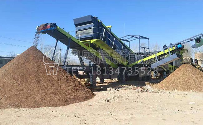鄭州鼎盛WAS380輪胎式移動(dòng)篩分站在湖北荊州建筑垃圾處理現(xiàn)場使用