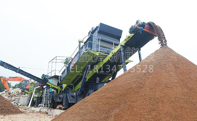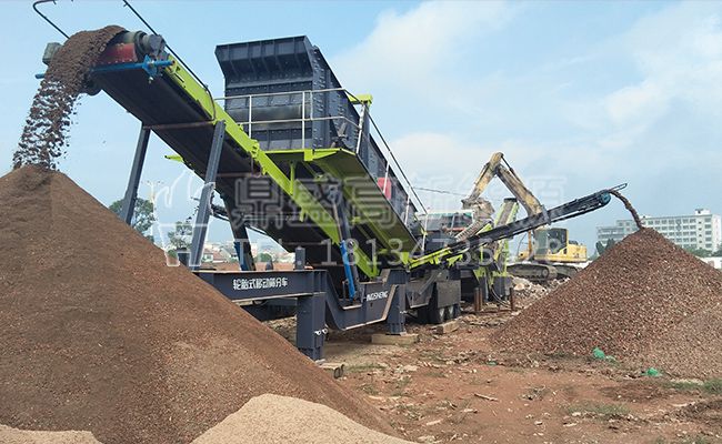 鄭州鼎盛WAS340輪胎式移動(dòng)篩分站對建筑垃圾再生骨料篩分現(xiàn)場