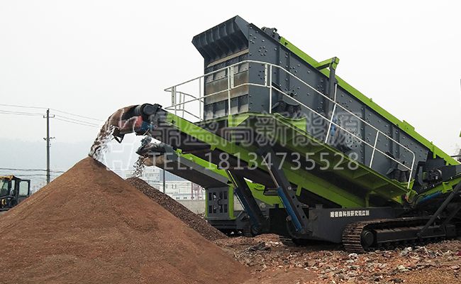 鄭州鼎盛TAS系列履帶式移動(dòng)篩分站對(duì)建筑垃圾再生骨料篩分現(xiàn)場(chǎng)