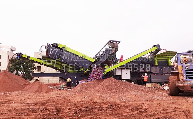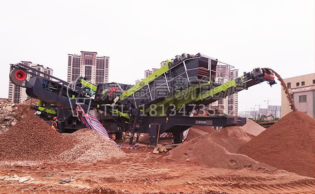 輪胎式移動破碎篩分聯(lián)合車在建筑垃圾破碎現(xiàn)場